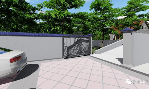 一个庭院园林的设计,大门是纳气口,在园林风水中必须重点考虑,此案大门在西北,门前是一个上坡路,这样就形成了一个案山,山主人丁水管财,这样开门的目的就是催旺人丁,催生财运。起到双方面扶持的作用。